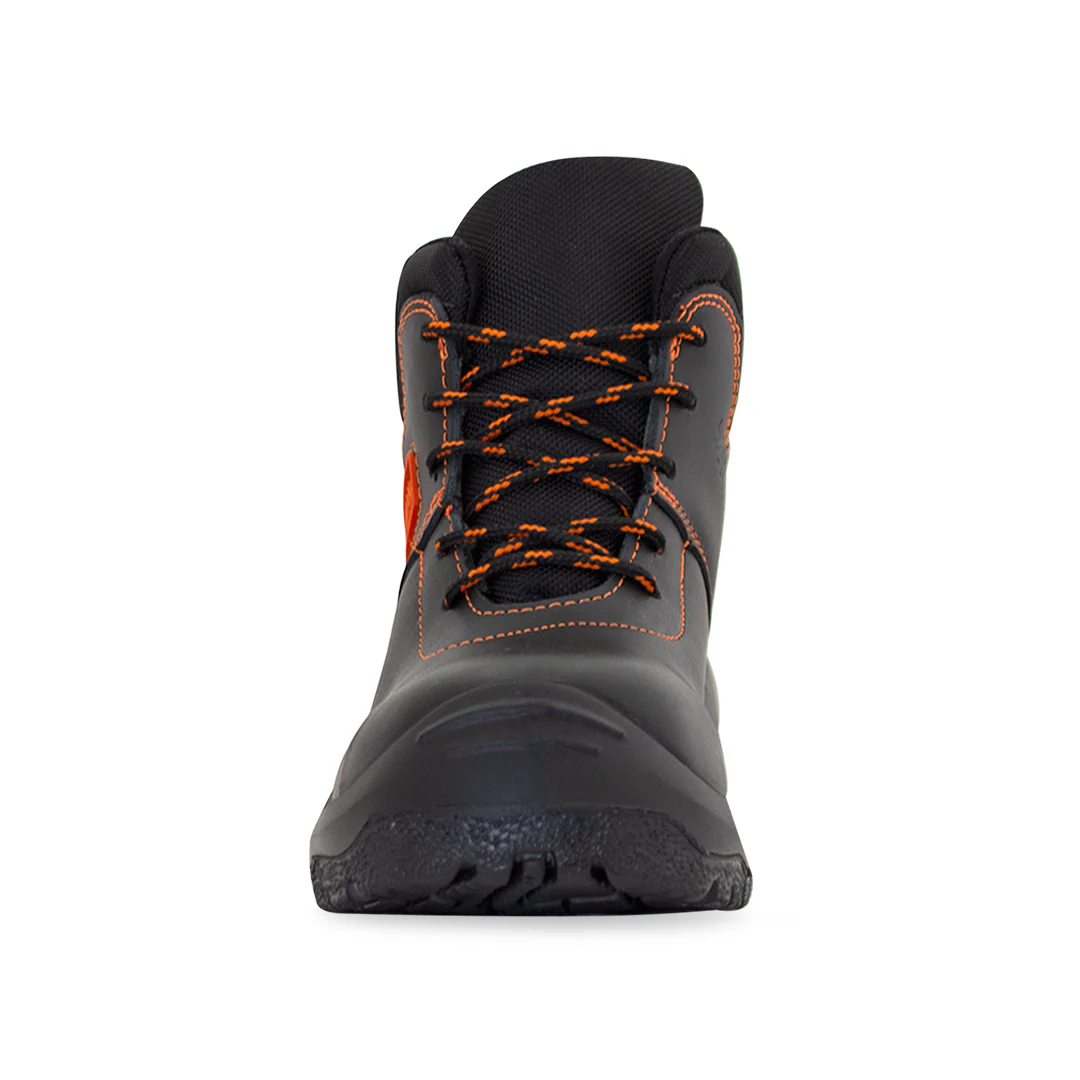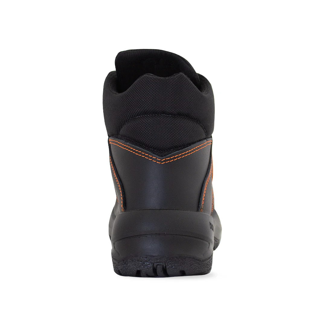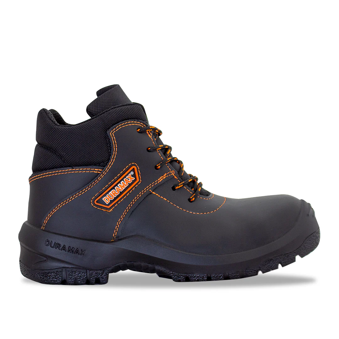 Zapato industrial dieléctrico para uso rudo con puntera de policarbonato contra impactos. Corte en piel genuina de ganado vacuno con reflectantes laterales para mayor visibilidad. Suela doble densidad en PU con piso de hule acrilonitrilo: antiderrapante, resistente a aceites, solventes y desgaste, con bumper en punta. Forro y plantilla Dry-Max transpirables para comodidad prolongada, en color negro robusto.