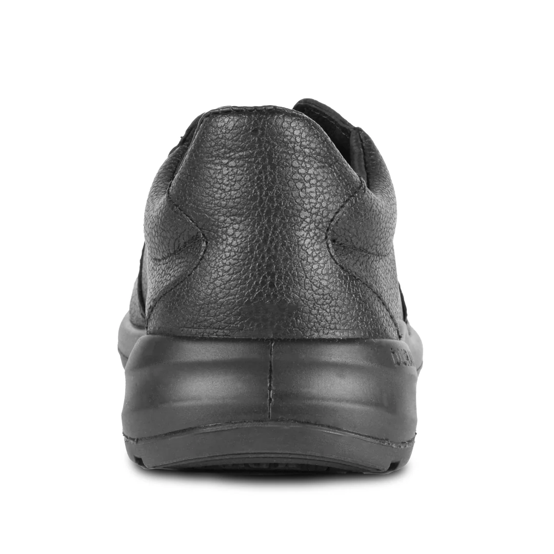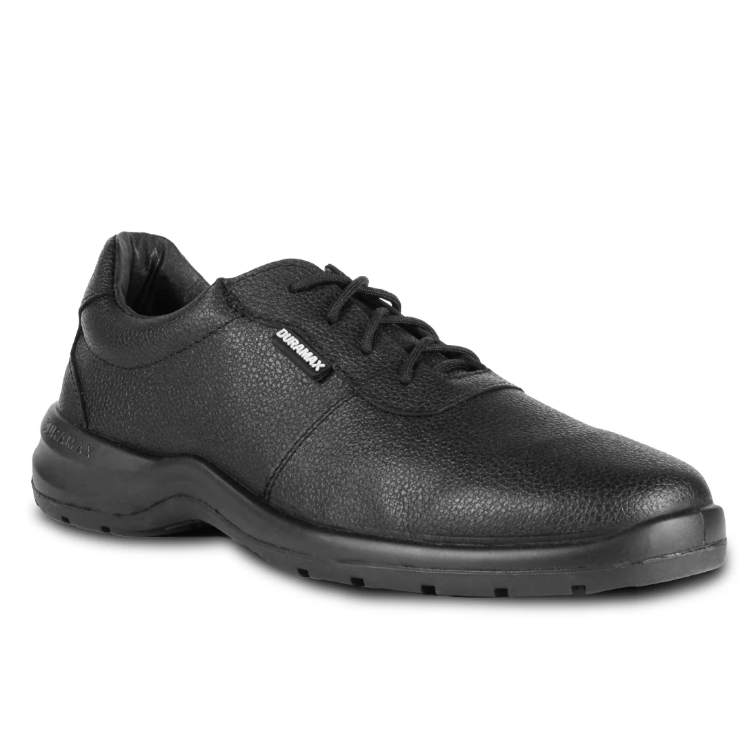 Calzado industrial ocupacional Tipo I (O) resistente a impactos, con corte en piel genuina de ganado vacuno y construcción inyectada directa. Suela de doble densidad en PU antiderrapante para mayor durabilidad. Sistema Dry-Max para transpirabilidad y comodidad prolongada. Ideal para entornos de bajo riesgo, en color negro, ofreciendo protección certificada y estilo funcional.