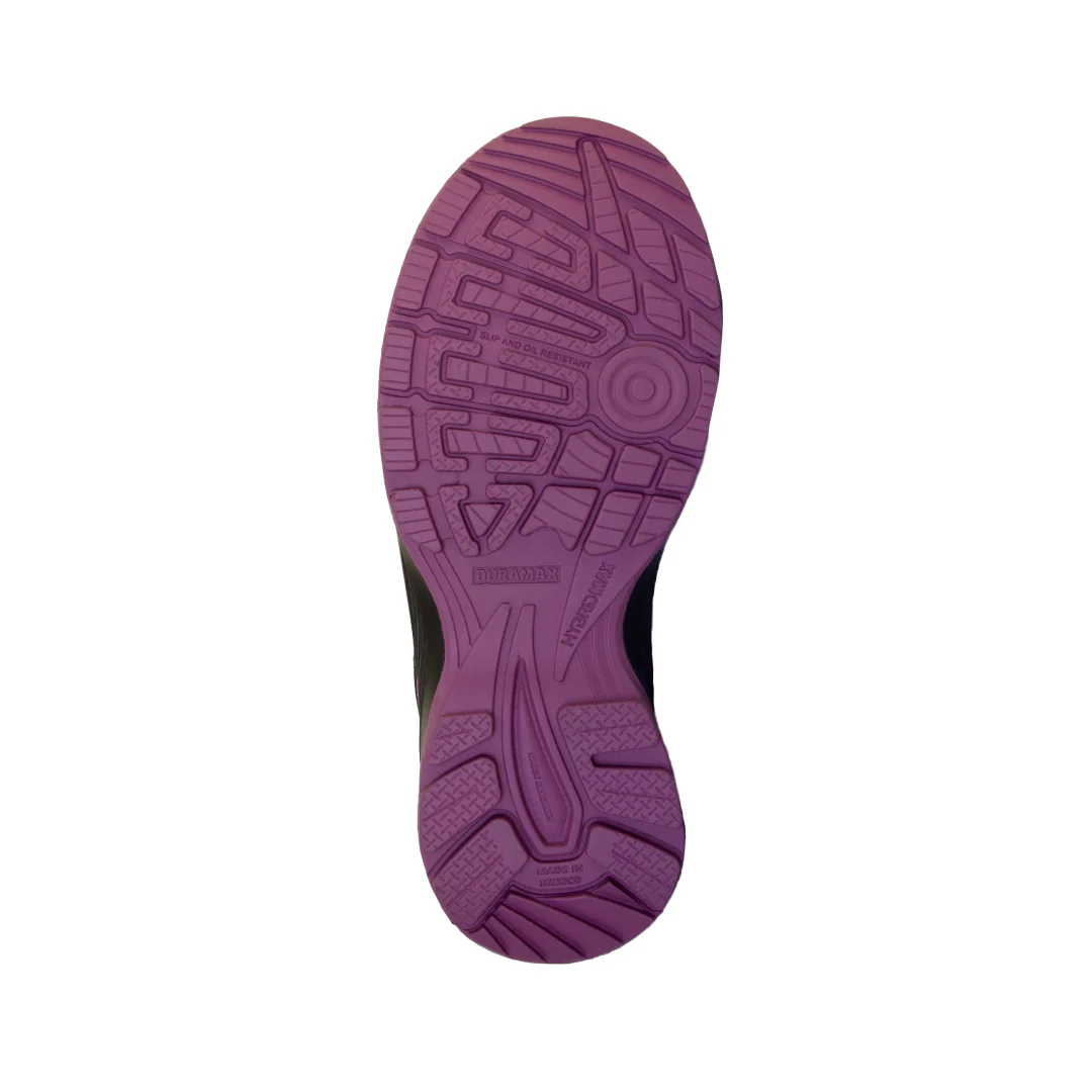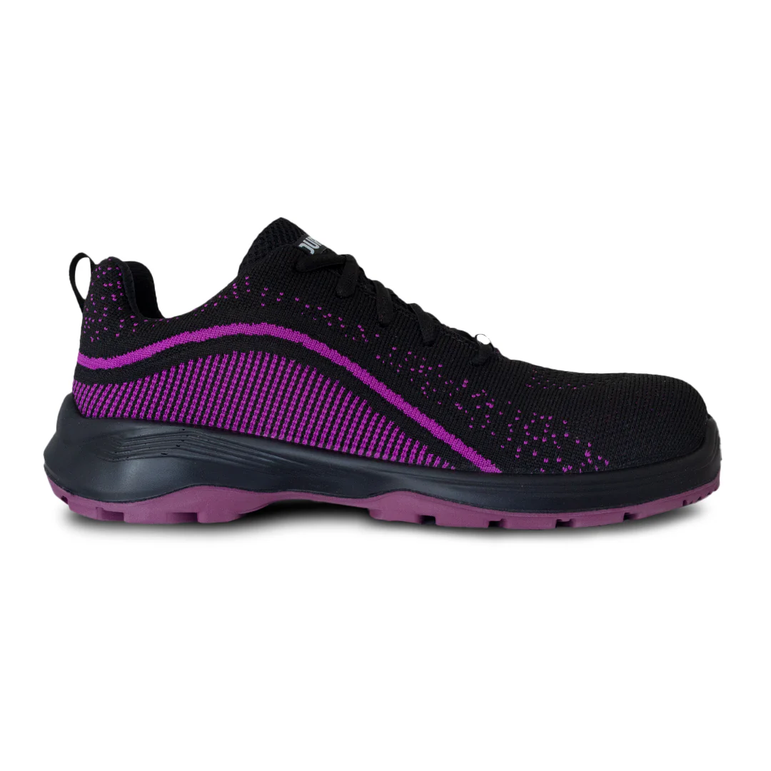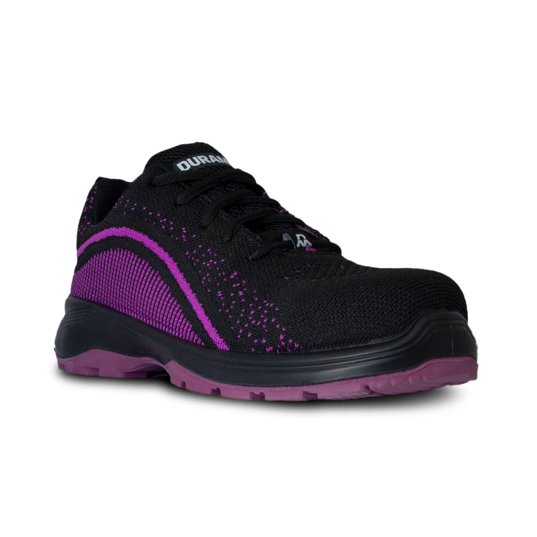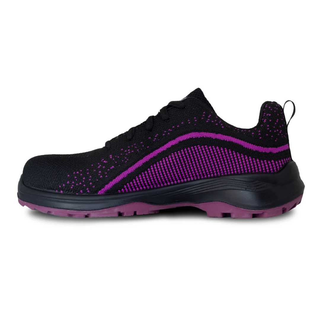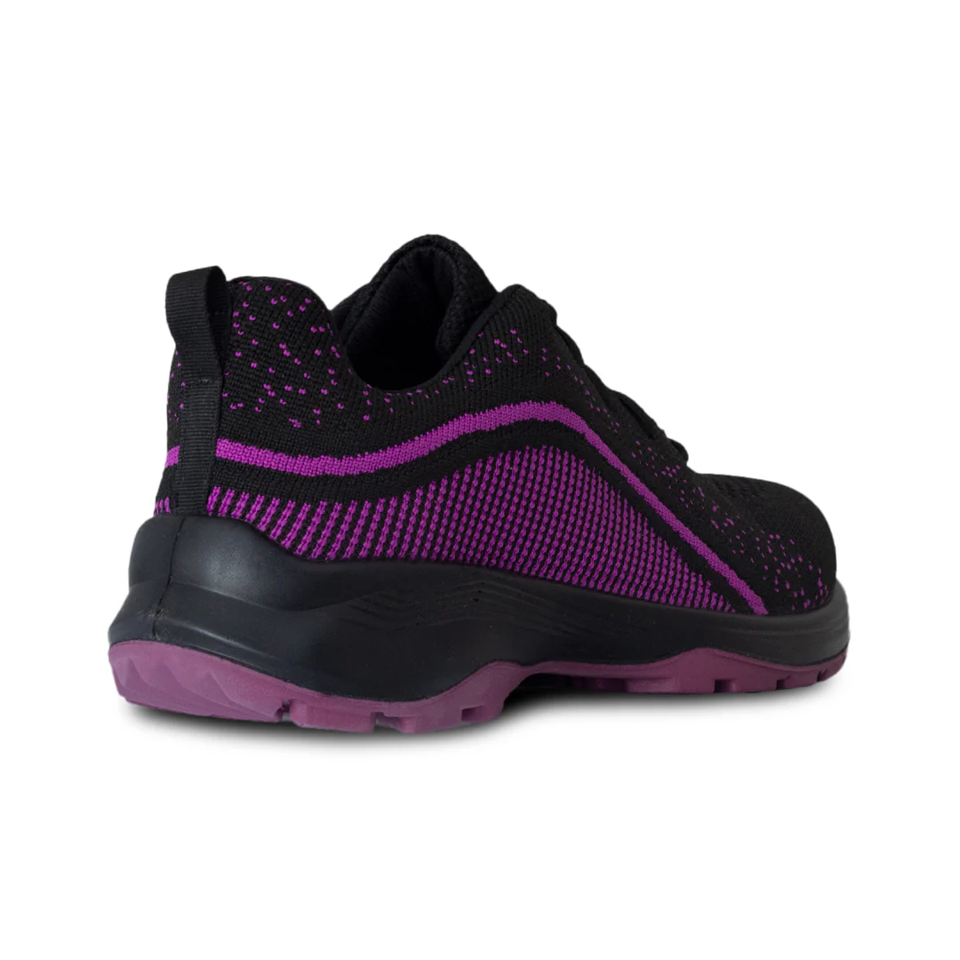 Tenis industrial de alto rendimiento con corte en textil ultratranspirable para máxima ventilación. Suela de doble densidad en PU con piso de hule acrilonitrilo: antiderrapante y resistente al desgaste. Incluye plantilla anatómica con forro Dry-Max para comodidad todo el día. Ideal para entornos industriales, en vibrante color morado, combinando seguridad, ligereza y estilo deportivo.
