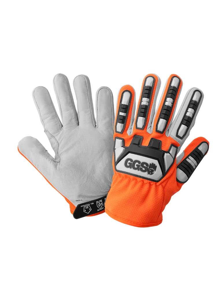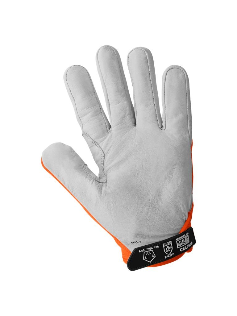 Los guantes CIA7600 de Global Glove son guantes estilo mecánico de alto rendimiento con palma en cuero de grano de cabra blanco estándar para máxima destreza. Incorporan un liner delgado tejido en Tuffalene® UHMWPE blanco cosido, que proporciona una excelente resistencia al corte (ANSI A6). El dorso en malla naranja de alta visibilidad transpirable mejora la seguridad en condiciones de poca luz. Protección contra impactos con TPR suave y flexible en dedos y metacarpos, refuerzo en entrepulgar y cierre de velcro para un ajuste seguro.
