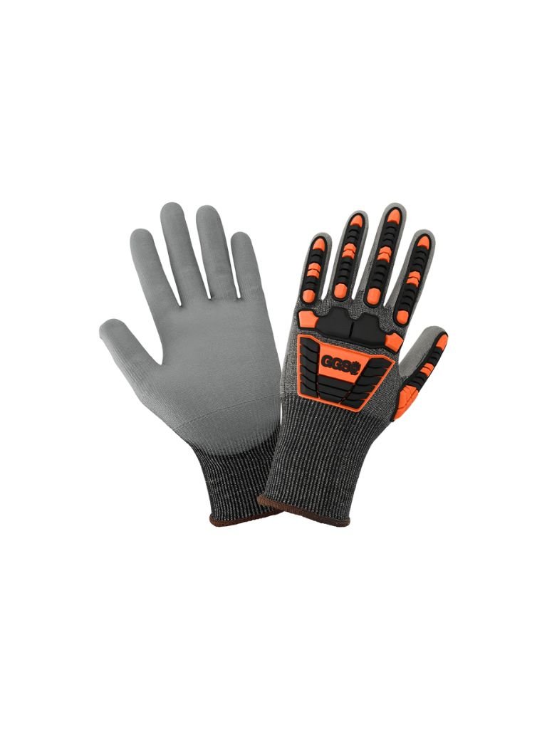 Los guantes Vise Gripster® C.I.A. CIA788 de Global Glove son guantes de alto rendimiento para protección contra cortes e impactos, con concha seamless de 18-gauge en Tuffalene® UHMWPE color sal y pimienta que ofrece sensibilidad similar a la mano desnuda, máxima destreza y excelente resistencia al corte. La palma recubierta en poliuretano gris suave proporciona alta destreza y adherencia al forro, evitando descamación o pelado. Protección antiimpacto en TPU naranja y negro de alta visibilidad en dedos y metacarpos, puntas de dedos compatibles con pantallas táctiles y puño tejido para un ajuste seguro y cómodo que previene deslizamientos.