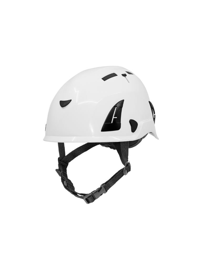 El casco Bullhead Safety™ HH-CH2-W es un casco industrial Tipo 2 de estilo escalada en color blanco, fabricado en concha de ABS ultraligera con resistencia al clima, químicos y propiedades no conductoras. Ofrece protección contra impactos frontales, laterales y posteriores, con interior forrado en espuma EPS ventilada y canales acolchados para mayor comodidad. Incluye ventilación ajustable en la parte superior (abierta o cerrada), suspensión ratchet pivotante trasera con dial EZ-click para ajuste preciso y seguro, correa de barbilla de cuatro puntos preinstalada y acolchado reemplazable que absorbe sudor.