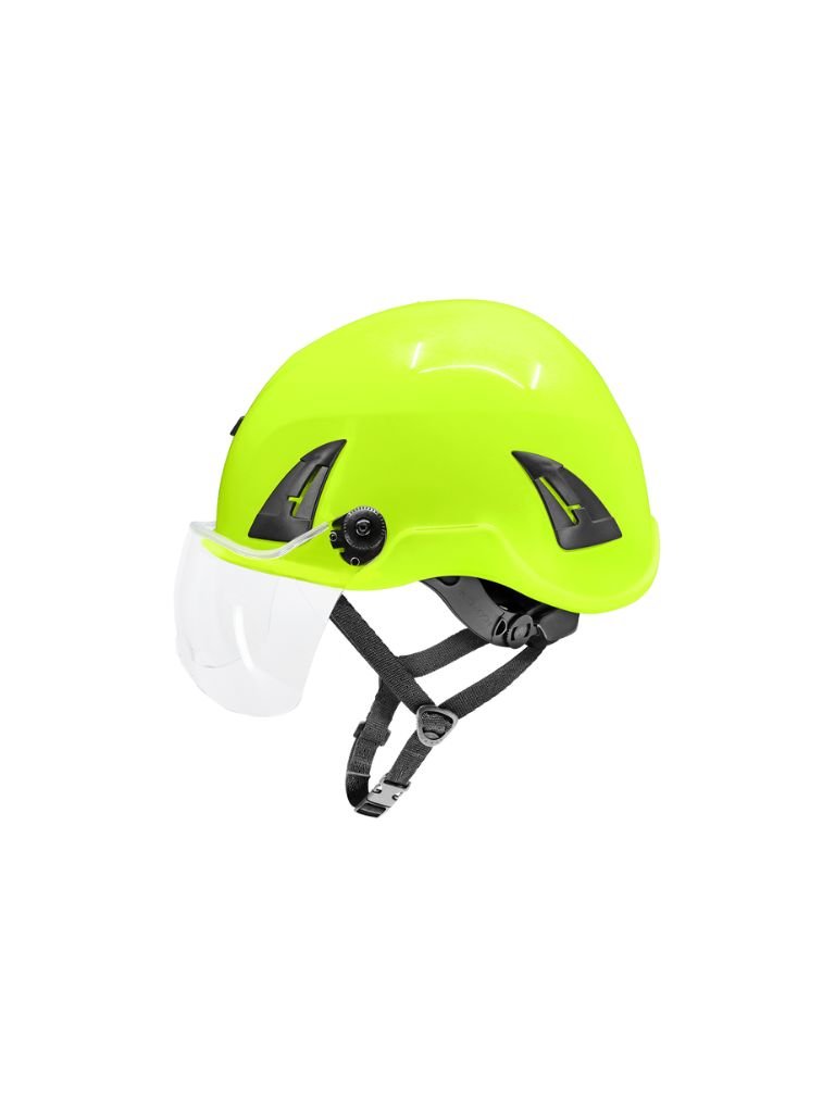 Ideal para trabajos en construcción, minería, mantenimiento de torres, infraestructura, parques eólicos y otras industrias donde se usa casco tipo escalada y se necesita protección facial contra partículas, impactos y rayos UV.