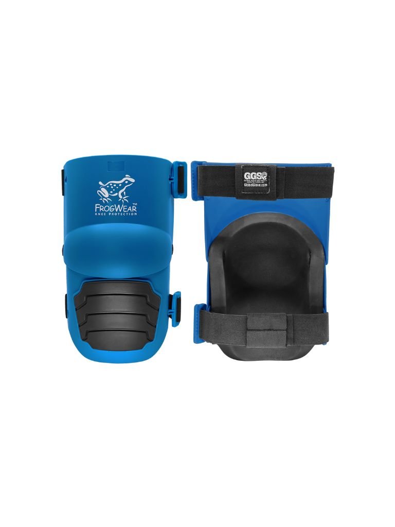 Las rodilleras KP360 de FrogWear están diseñadas para profesionales que necesitan protección cómoda, duradera y sin deslizarse. Con un cuerpo de plástico azul de alta resistencia, una capucha de TPR negra que proporciona tracción sin dejar marcas (“non‑marring”), y un diseño articulado (“hinged”) que permite mayor movilidad, estas rodilleras elevan el estándar de protección en las rodillas.